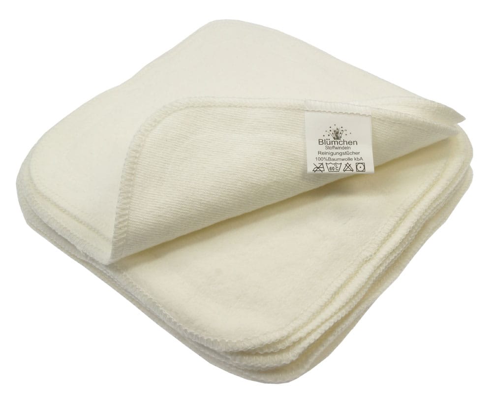 Blümchen robčki iz blaga (10 kosov) – bombaž – idealne krpice za večkratno uporabo, narejene iz dvoslojnega bombaža.Na eni strani je terry, ki čisti učinkovito, na drugi pa jersey za ćiščenje občutljivih delov. Uporabljate jih lahko pri čiščenju otroškega obrazka in ostalega telesa, vključno z ritko. V plenicah lahko nadomestijo dodatni vložek ali booster, ko potrebujete večjo vpojnost. Uporablja se jih lahko tudi v gospodinjstvu namesto papirnatih brisačk!