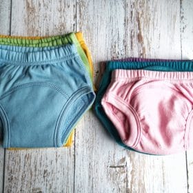 V kolikor se vam zdi, da otrok še ni pripravljen nanje, lahko čez oblečete tudi nepremočljive prekrivne hlačke, da zaščitite pohištvo in tla.