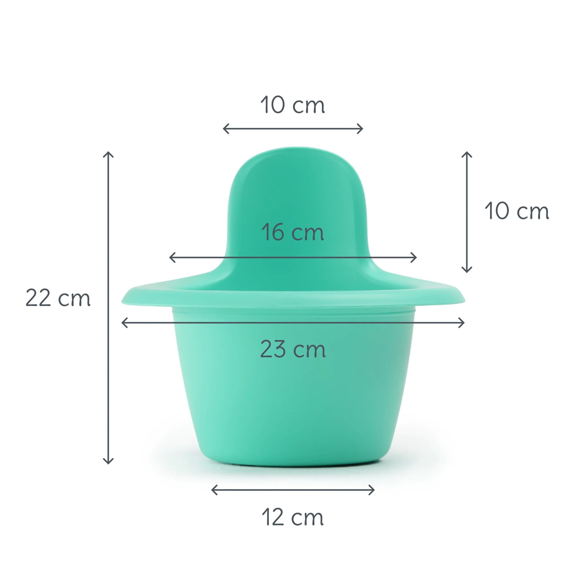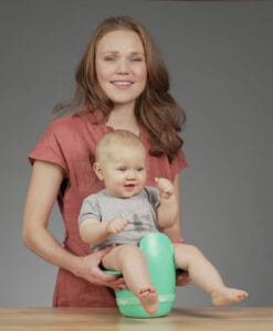 Pazljivo: Uporabljajte pod nadzorom. Kahlica je narejena, da se otroka drži nad njo, ne da on sedi na njej. Če starejpi otroci sedijo na njej, se lahko prevrne.
