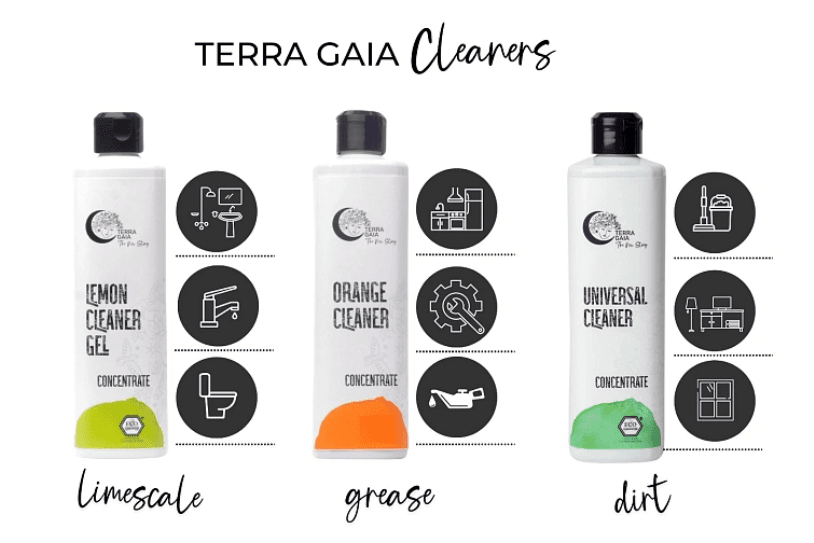 Čistilo Terra Gaia 500ml (sprej) – Orange (maščoba) – če bi izbrali le eno čistilo, je to Orange. Njegova čudežna moč je idealna za čiščenje vseh površin, ter še posebno trdovratnih madežev kot so maščoba, lepilo, vosek, črte kemičnih svinčnikov in markerjev. Očisti skoraj katerkoli površino v kuhinji. Kos je katerikoli maščobi, odstrani madeže črnila, katrana, drevesno smolo, črte svinčnikov, lepilo po odstranitvi nalepke, žvečilni gumi…. Deluje tudi na ročnem ali pa strojnem pranju preprog in kavčev.