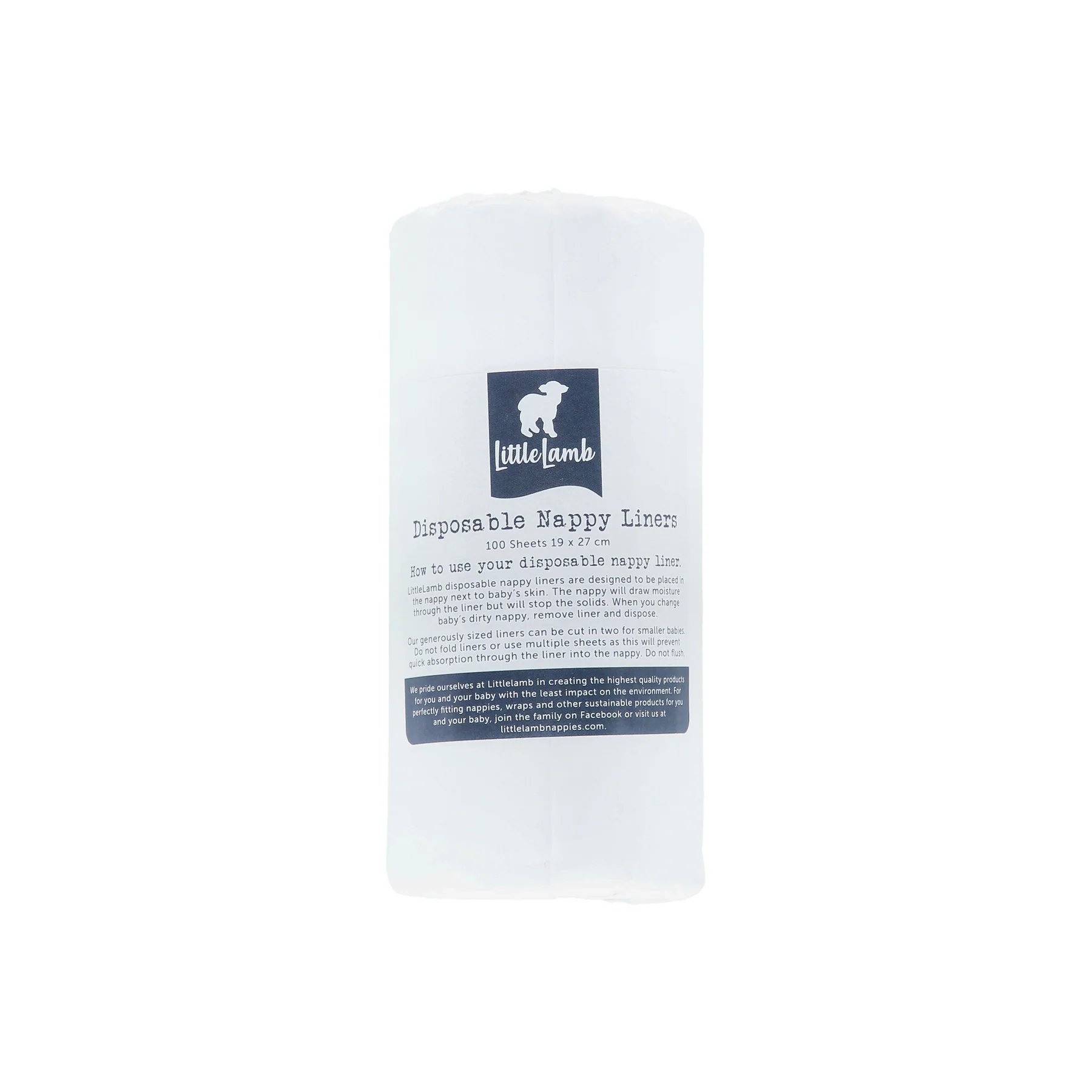 Liner – plenične predloge Little Lamb – 100 kosov – 100% naravne predloge brez vonja, nebeljene, za lažje čiščenje pleničk. So vpojne in ohranjajo dojenčkovo kožo suho. Po en kos se jih položi direktno na pleničko oz vpojne vložke in se stikajo z otroško kožo. Zdaj v papirnati embalaži!